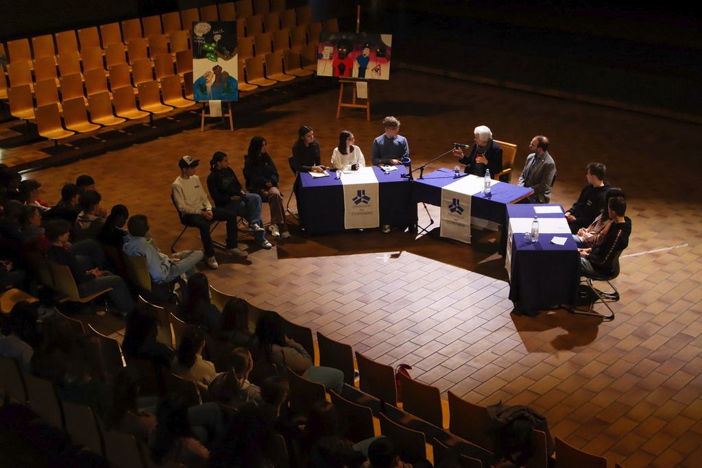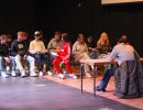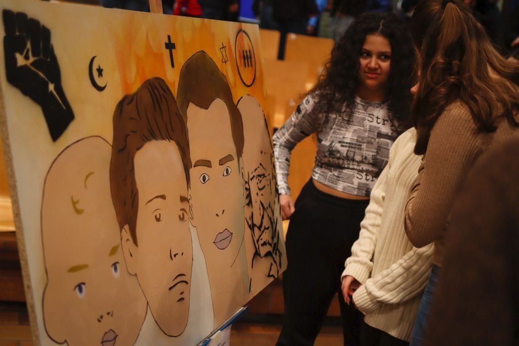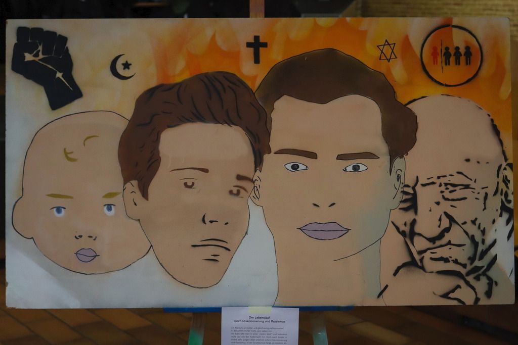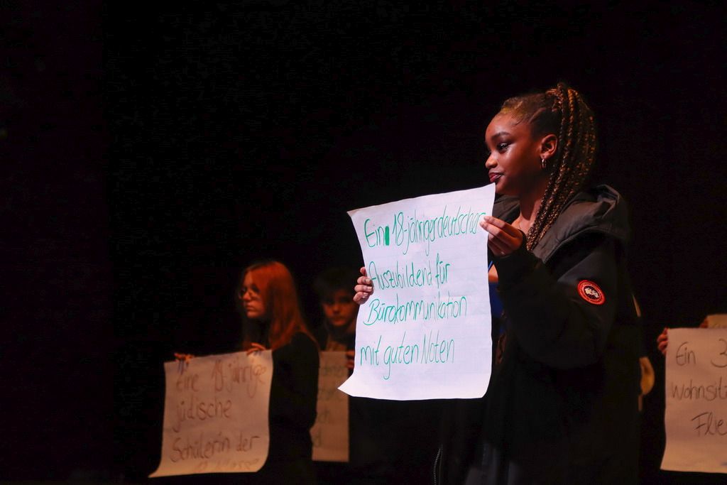 Der Ausgangspunkt ist schon mal nicht schlecht, wir wollen keine Rassisten sein. Nur, wenn wir es sind, ohne es zu merken? Mit solchen Fragen zur Alltagsdiskriminierung und der Macht von Worten, mit Blick in die Geschichte auf das, was in Deutschland stattgefunden hat, als Menschenwürde nichts galt und mit Ideen dazu, wie man tatsächlich gegen Diskriminierung und Rassismus aktiv werden kann, beschäftigen sich unsere Neuner eine Woche lang. Wie sie ihre Entdeckungen, Erfahrungen und Ideen in Worte, Bilder und Lieder gefasst haben, das konnte sich bei der Abschlussveranstaltung am Freitag hören und sehen lassen. Einen kleinen Einblick darin bieten die Bilder von Sam Endrigkeit und der Film seiner Doku-Gruppe „30 Frames gegen Fremdenhass“