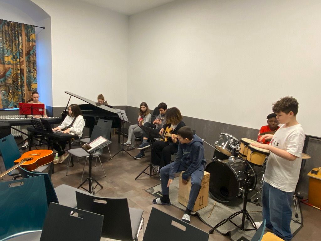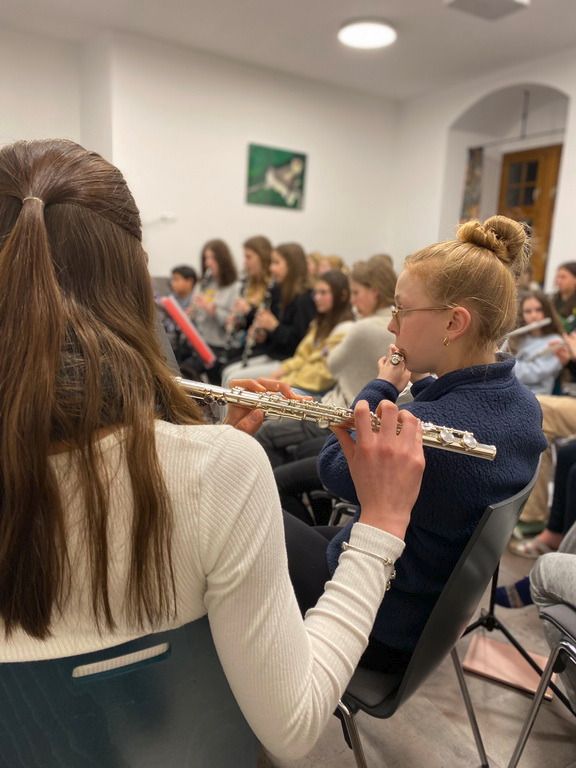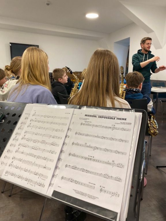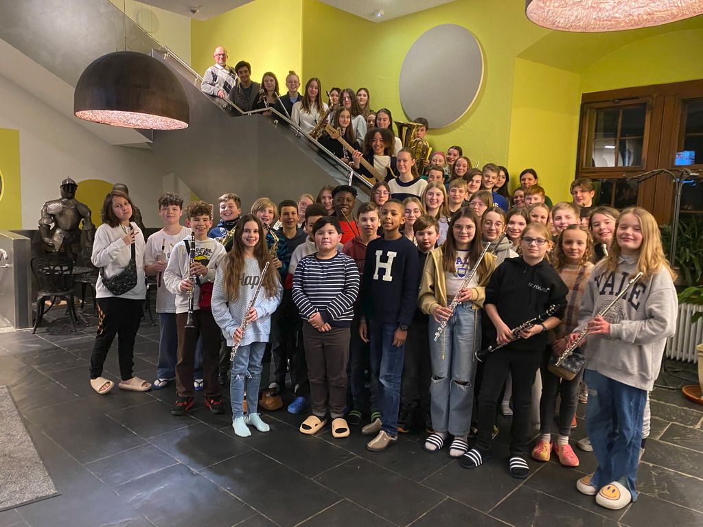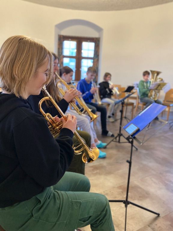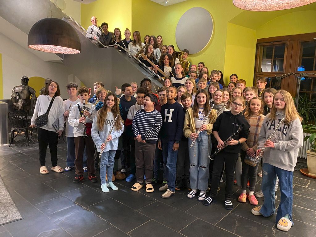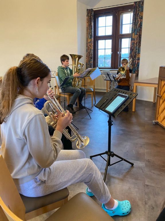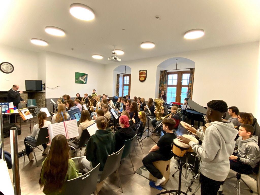Anschließend wurde die Gruppe geteilt, sodass die Kinder der fünften Klasse, die Rhythmusgruppe und die übrigen Bläser jeweils eigene Proben abhielten. Nach dem Abendessen ging es dann so oder so ähnlich weiter. Der Donnerstag bot uns genügend Zeit, um in kleineren Gruppen intensiv weiter zu musizieren und die Stücke genauer einzustudieren. Das gute Essen der Jugendherberge trug zur Motivation bei. Am Abend schließlich beschloss eine Gesamtprobe den Tag und ließ bereits jetzt erkennen, dass alle Big Band Mitglieder motiviert und engagiert dabei waren. Am Sonntag mussten wir die Zimmer und zwei von den drei Probenräume früh räumen. Die Gesamtprobe im dritten Probenraum – der sich oben in einem der Türme befand – machte aber mehr als deutlich, dass sich die jungen Musiker engagiert ins Zeug legen, um dem Publikum bei den anstehenden Konzerten ein schönes musikalisches Erlebnis zu bereiten. Wir freuen uns sehr, wenn möglichst viele Zuhörer beim Sommerkonzert am 1. 6. 2023 das Ergebnis unserer Arbeit würdigen. Ohne die sehr großzügige Unterstützung des Fördervereins des Gymnasiums am Stoppenberg und der Heidehofstiftung wäre die Probenfahrt, in dieser Form, nicht möglich gewesen. Wir bedanken uns aufrichtig bei den genannten Institutionen für ihre Unterstützung.