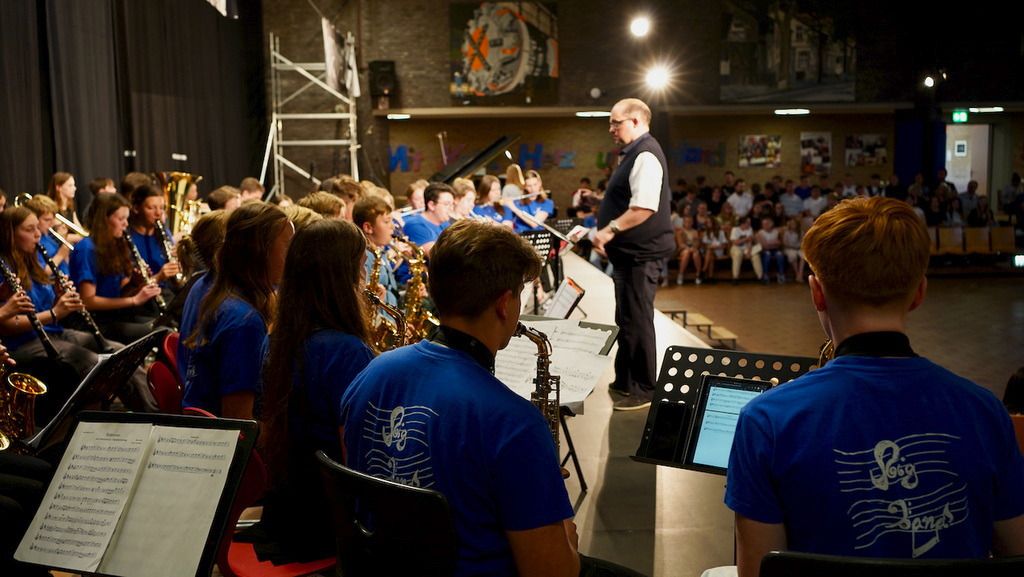 Den Anfang machten die jüngsten Mitglieder der Big Band aus der fünften Klasse, die die bekannten Musikstücke „Old Mc Donald had a farm“ und „Hard Rock Blues“ engagiert und begeistert darboten. Aber auch der Chor und die „große“ Big Band hatten lange geübt und konnten das Publikum mit ihren Stücken fesseln. Besonders hervorzuheben sind die Solisten, die bei dem Wettbewerb „goldene Taste“ gewonnen hatten und nun ihr „Siegerstück“ auf dem Sommerkonzert präsentieren durften. Danieli beeindruckte mit der 27. Etüde von Issak Berkowitsch, Julia Kberührte das Publikum mit ihrer Interpretation von „All of me“ von John Legend. Hanna (Gesang), Ahmet (Gitarre) und Ndidi Bass) rockten das Haus mit „Back to Black“ von Amy Winehouse. Henry hatte extra für das Konzert ein eigenes Stück für sein Instrument – die Gitarre - komponiert und schlug das Publikum damit in den Bann.