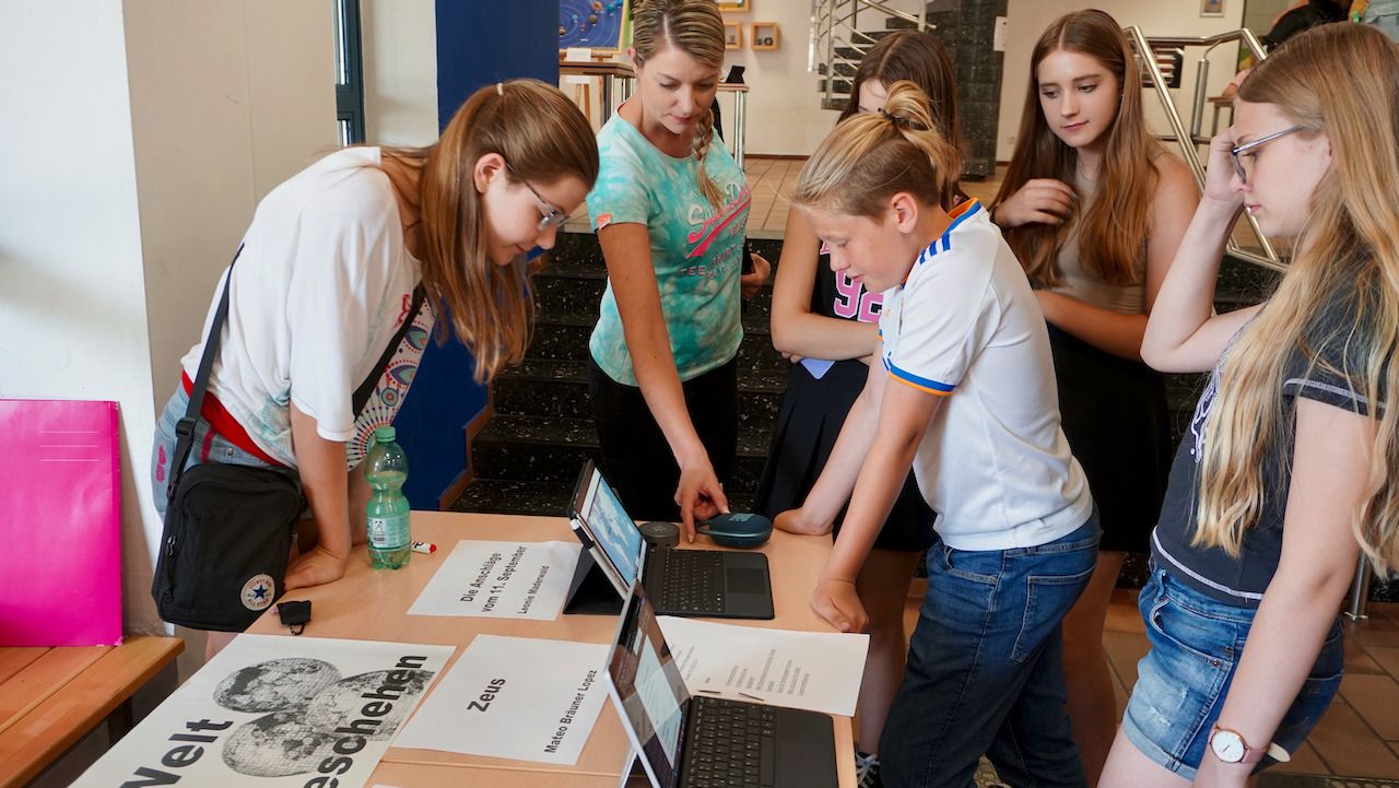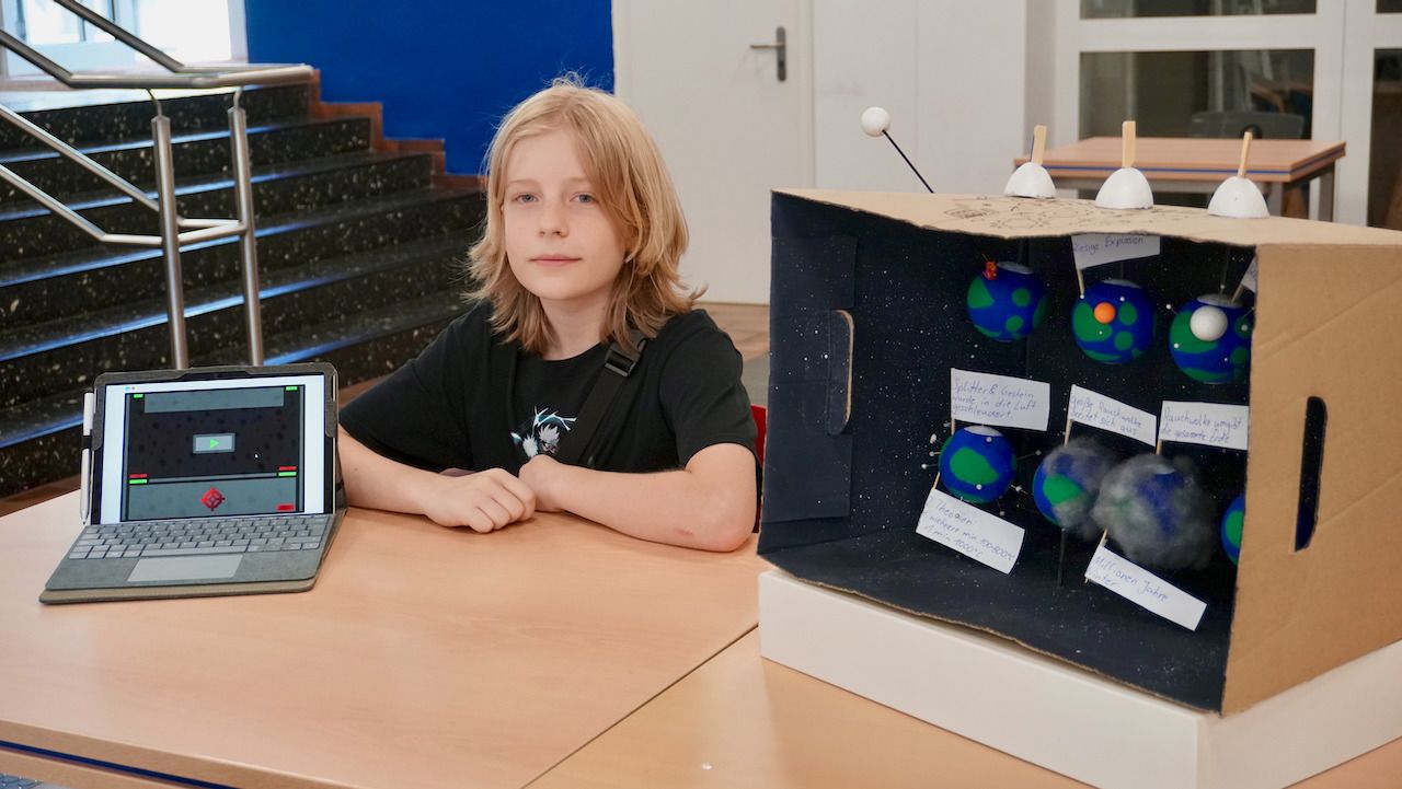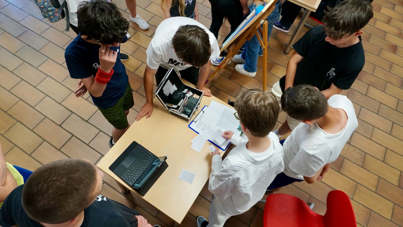 Am vergangenen Donnerstag fand zum ersten Mal die Science Fair der Projekt-Lernbox Klasse 7 statt. Ein Jahr lang arbeiteten alle Schülerinnen und Schüler der Klassen 7 selbständig an selbstgewählten Projekten. Ceyda und Sofia (beide 7b) beschrieben in einem kurzen Interview die neue Projektlernbox: Alle Schülerinnen und Schüler wählten zwei Projektkurse aus dem Angebot Sprachen der Welt, Weltgeschehen, Kunst, Mathematik, Informatik und Naturwissenschaften wählen.