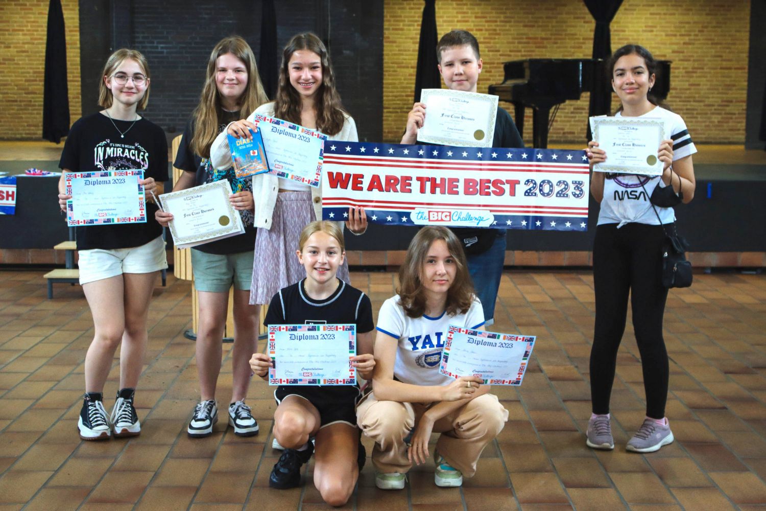 Nachdem sich kurz nach den Osterferien alle Schülerinnen und Schüler der Jahrgangsstufe 6 und einige Schülerinnen und Schüler der Klasse 7 der Big Challenge stellten, fand am 20.06.2023 die Siegerehrung der Big Challenge in der Aula statt. Herr Göbel hielt eine kleine Ansprache und im Anschluss begann auch schon Siegerehrung aller Teilnehmerinnen und Teilnehmer.
