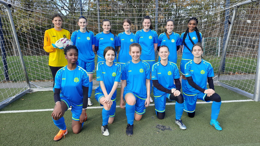 Nach zwei Jahren ohne Spiele gegen andere Essener Schulen konnten im Herbst 2022 endlich wieder die neuen Trikots herausgeholt werden. Unsere Mannschaft, die seit der Klasse 5 erfolgreich ist und in jedem Schuljahr im Finale der Stadtmeisterschaft stand, freute sich auf die Herausforderung. Im Spiel gegen das Leibniz-Gymnasium gewannen die Mädchen der Jahrgänge 2007-09 dann souverän mit 4-2 (Tore: Carolin (3) und Lena), wobei die Gegentreffer erst in den Schlussminuten fielen. Einige Tage danach standen unsere Gegnerinnen für das Endspiel am 21.03.2023 fest: die Mannschaft der Sekundarschule Am Stoppenberg. Auf das Derby freuen sich: