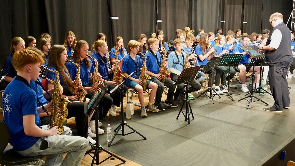 Den Anfang machten die jüngsten Mitglieder der Big Band aus der fünften Klasse, die die bekannten Musikstücke „Old Mc Donald had a farm“ und „Hard Rock Blues“ engagiert und begeistert darboten. Aber auch der Chor und die „große“ Big Band hatten lange geübt und konnten das Publikum mit ihren Stücken fesseln. Besonders hervorzuheben sind die Solisten, die bei dem Wettbewerb „goldene Taste“ gewonnen hatten und nun ihr „Siegerstück“ auf dem Sommerkonzert präsentieren durften. Danieli beeindruckte mit der 27. Etüde von Issak Berkowitsch, Julia Kberührte das Publikum mit ihrer Interpretation von „All of me“ von John Legend. Hanna (Gesang), Ahmet (Gitarre) und Ndidi Bass) rockten das Haus mit „Back to Black“ von Amy Winehouse. Henry hatte extra für das Konzert ein eigenes Stück für sein Instrument – die Gitarre - komponiert und schlug das Publikum damit in den Bann.