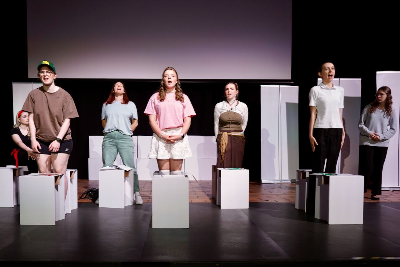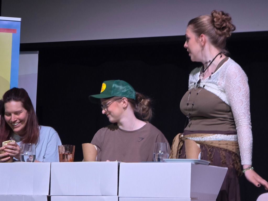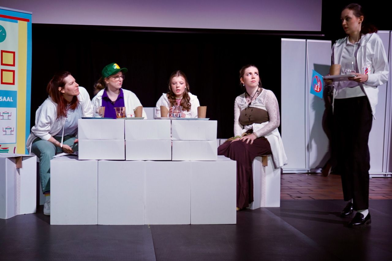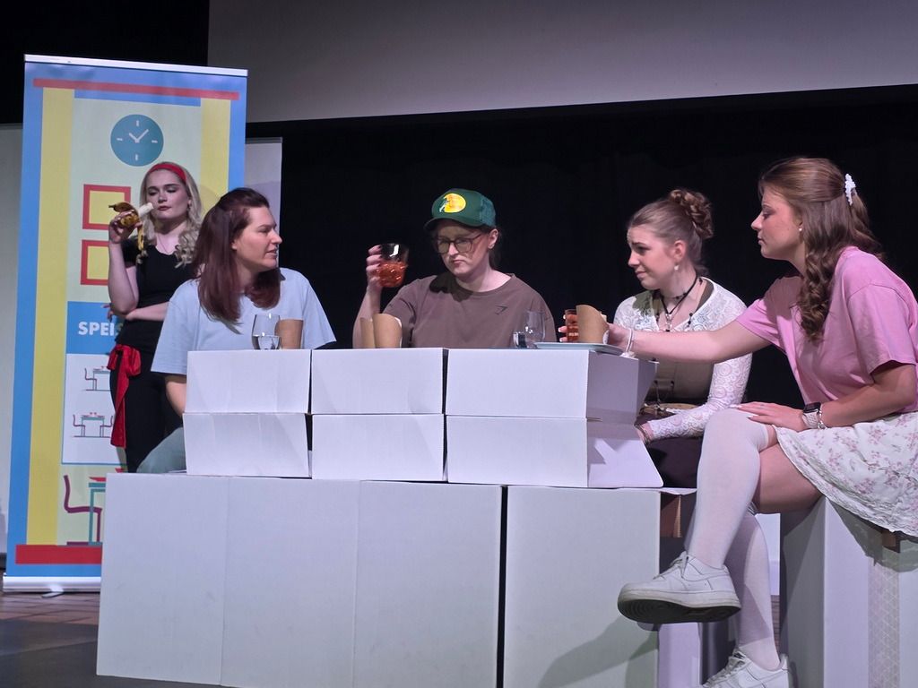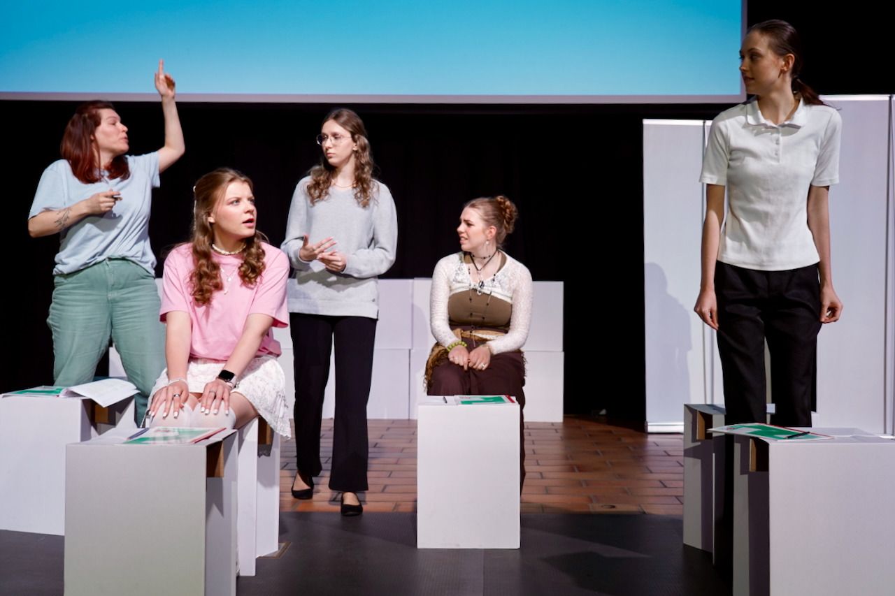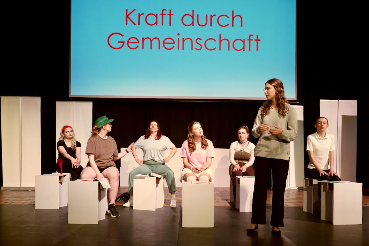 Am Ende gab es lang anhaltenden Applaus für die acht Spielenden und alle anderen an der Inszenierung Beteiligten. Die Schüler:Innen spielen ihr Stück noch am 25. Mai und am 27. Mai jeweils um 19.30 Uhr. Karten sind an der Abendkasse erhältlich. Vorbestellungen per mail an