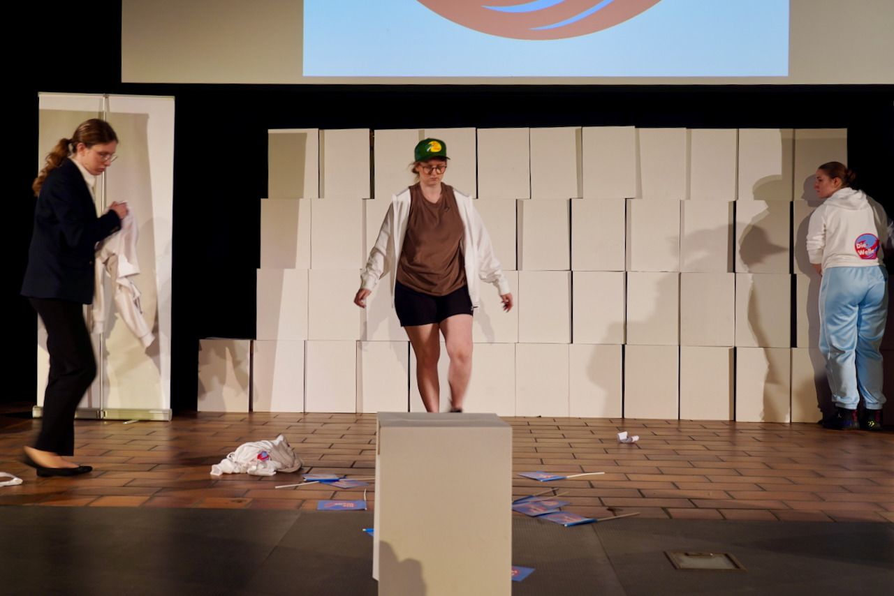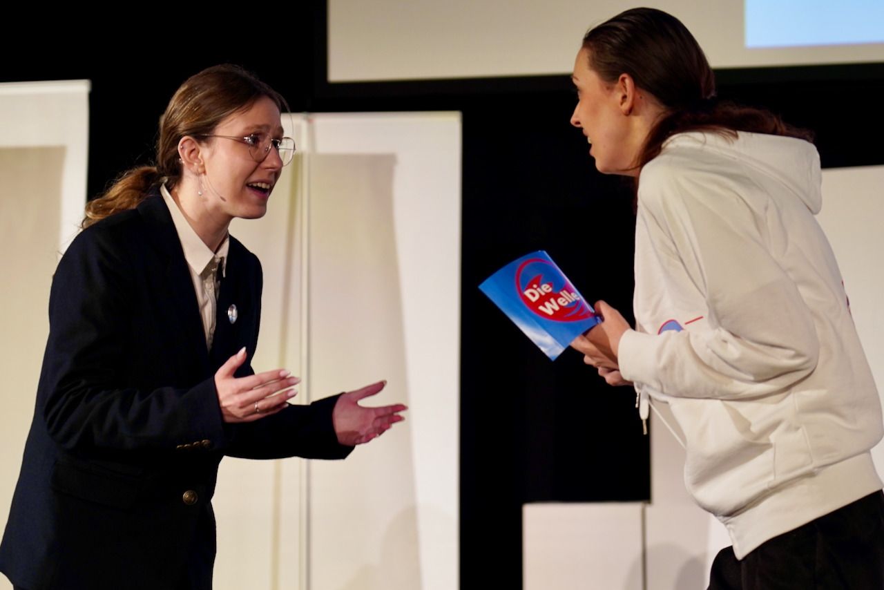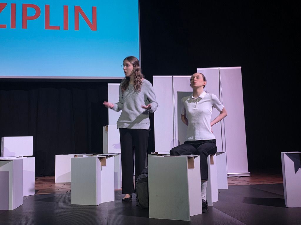 Am Freitag, den 23. Mai, feierte der Literaturkurs der Q1 die Premiere. Bei Einlass empfingen die Schüler:Innen die leider nur 120 Zuschauer:Innen mit folgender Erklärung: