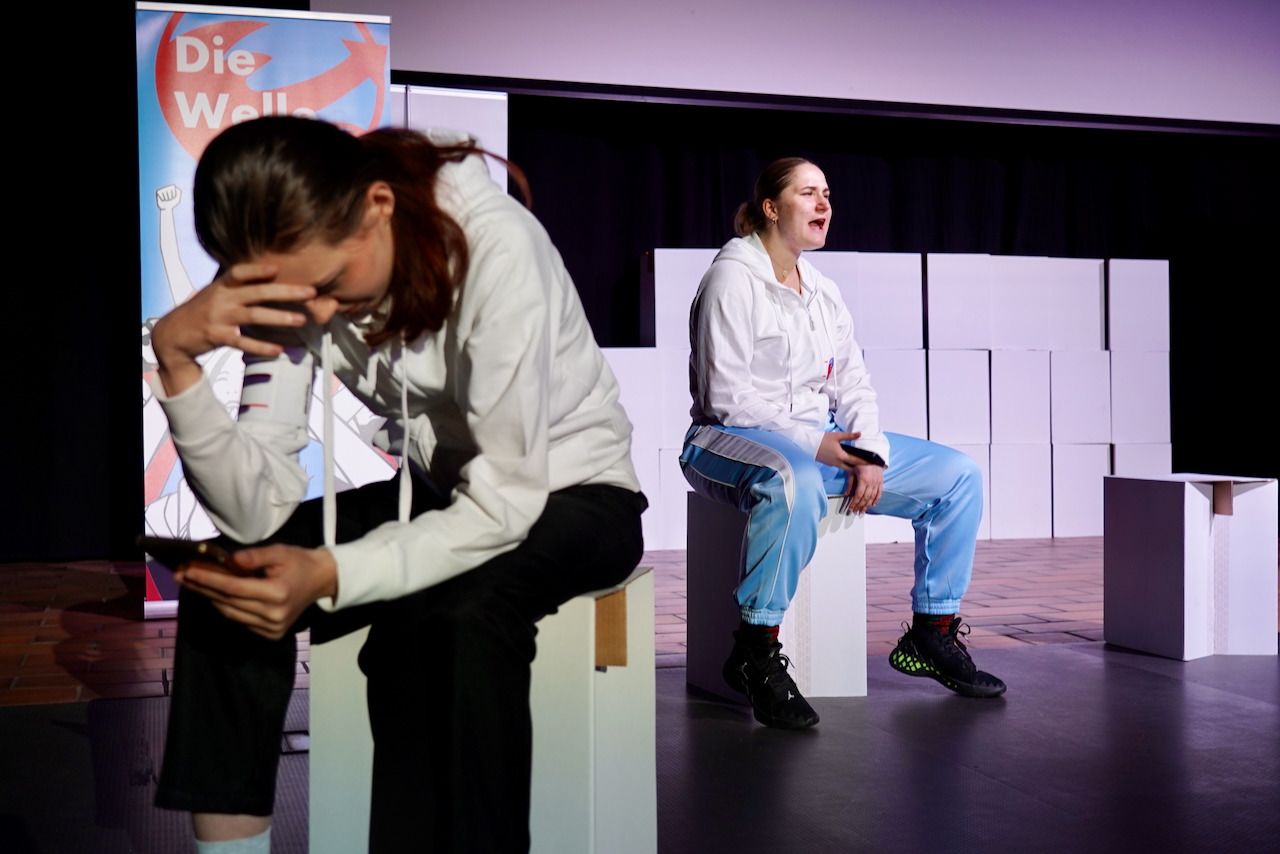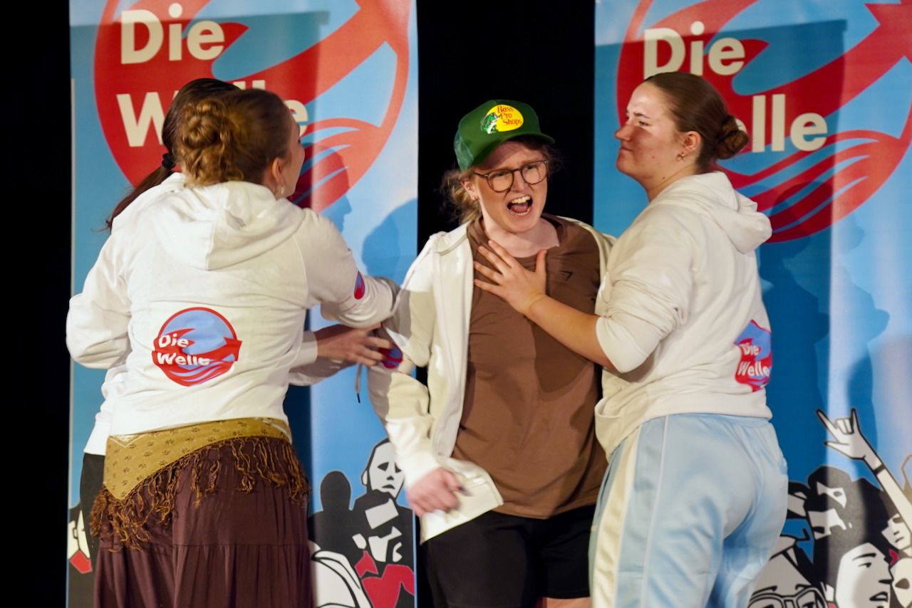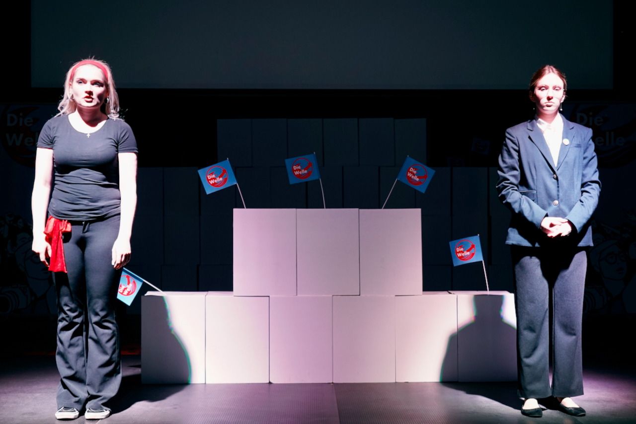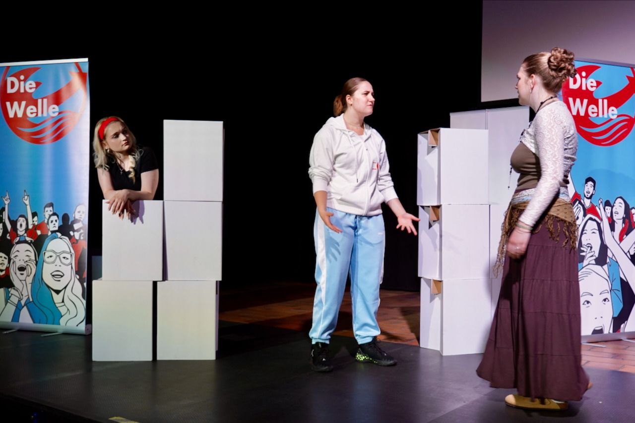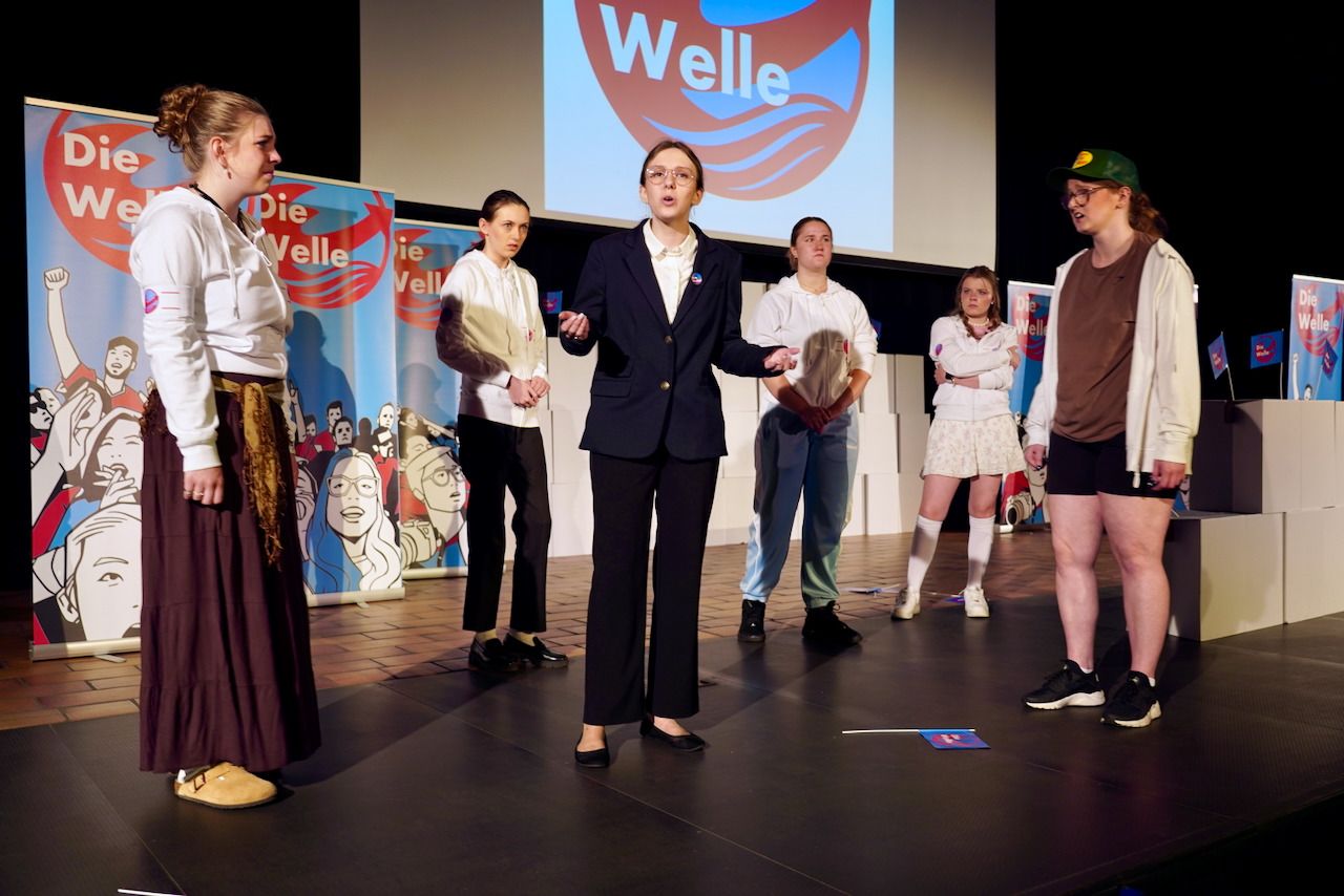 Wir, der Literaturkurs Q1, wollen nicht tatenlos zusehen, wie rechte Kräfte unsere Demokratie zu zerstören trachten, also haben wir unsere hehren Ansprüche, Ihnen hier ein Stück gehobener Kultur zu vermitteln, dem Diktat der Zeit geopfert und wollen mit unserem Stück in diesem Jahr bewusst politisch und pädagogisch sein. In Schulen und überall anderswo muss die Demokratie angesichts der Herausforderungen der Zeit gelehrt, gelebt und verteidigt werden. Freuen Sie sich auf einen politischen Abend mit unserer Version von "Die Welle".